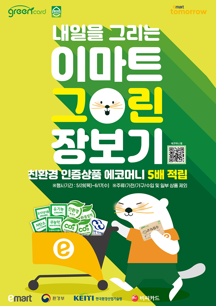 이마트는 해달을 모티프로 한 캐릭터 '투모'를 직접 제작하여 ‘이마트 투모로우’라는 친환경 캠페인을 브랜딩하고 있습니다. 모바일 영수증 발행, 장바구니 사용 실천, 플라스틱 회수 참여 등 이마트에서의 구매활동과 직접 연계되는 사회적 캠페인을 진행하였습니다.