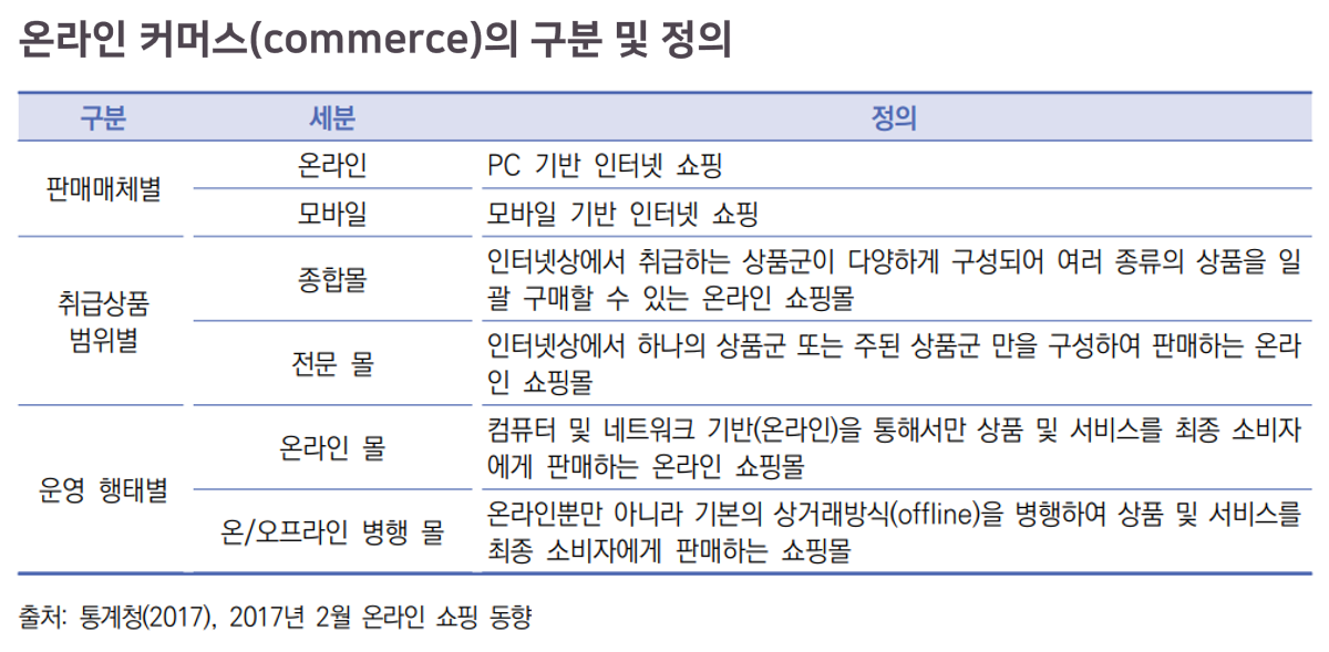 온라인시장의 중요도가 커짐에 따라 오프라인 마트의 매출액 비중은 감소하고 있습니다. 산업통상자원부에 따르면 2018년 대형 마트 매출은 전년 대비 2.3% 감소했습니다. 해외도 상황은 다르지 않습니다. 2017년에는 오프라인 완구매장의 대표 브랜드였던 토이저러스(Toy "R" Us)가, 2018년에는 전통적인 미국의 중저가 백화점 체인인 시어스(Sears)가 파산 신청을 했습니다. 소비재시장의 변화에 따라 소매종말(retail apocalypse)이라는 말이 나오고 있습니다. 소매종말은 미국 내 백화점과 체인점, 소규모 상점 등 입지 소매업들이 대거 퇴출되는 현상을 가리킵니다. 소비자들이 오프라인 매장에서 온라인으로 구매처를 옮기는 것이 이 같은 현상의 큰 부분을 차지합니다. 스위스의 국제금융 서비스 기업인 크레디트 스위스(Credit Suisse)는 지금 남아있는 미국 상가의 25%가 2022년까지 문을 닫을 것이라고 예측했습니다.