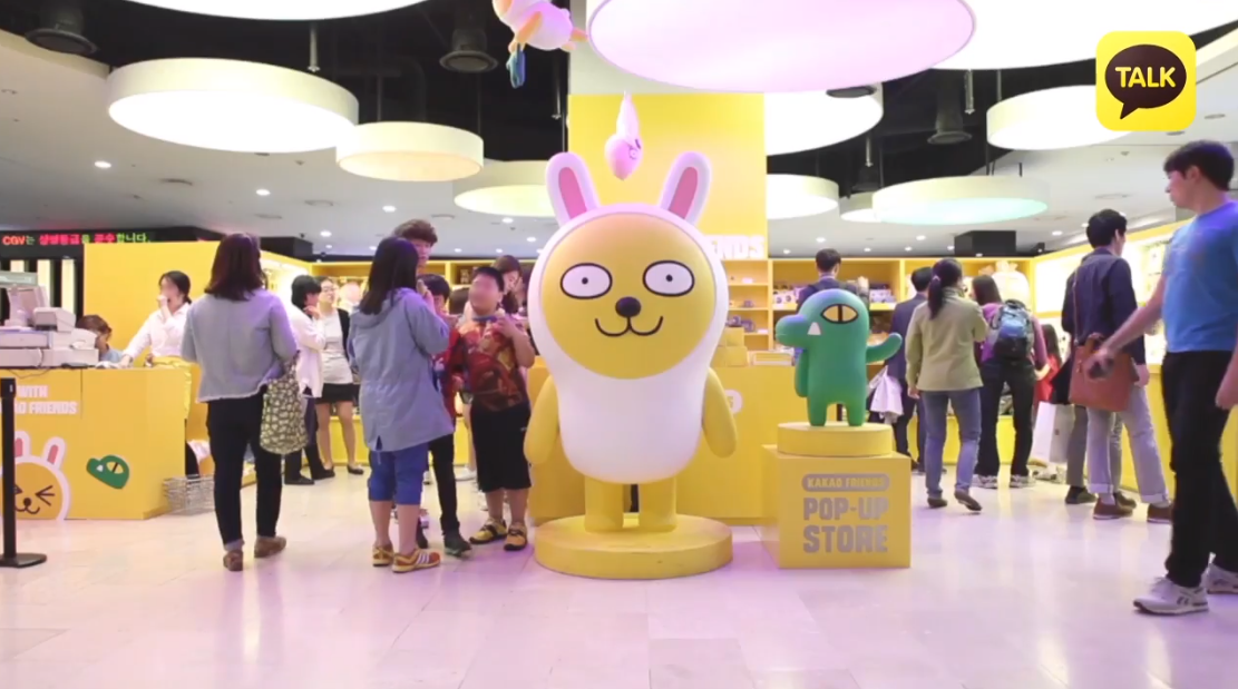 2014년 신촌 현대백화점에서 에스컬레이터 아래 유효공간을 이용해 단 며칠간 진행했던 카카오프렌즈 팝업스토어는 오픈 5일 만에 2억 원의 매출을 기록했습니다. 이는 2015년 카카오프렌즈 캐릭터를 전문적으로 취급하는 계열사 카카오IX 설립에 영향을 미쳤습니다. 그리고 이후 많은 캐릭터 업체들이 다양한 공간에서 팝업스토어를 운영하도록 자극하는 계기가 되었습니다.