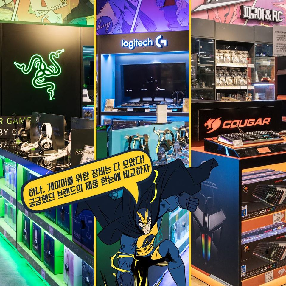 이마트의 가전 전문매장인 일렉트로마트는 비록 캐릭터 전문매장은 아니지만 히어로 캐릭터 일렉트로맨을 통해 만화 같은 스토리텔링 요소가 있는 매장 컨셉을 지향합니다. 일렉트로마트는 일렉트로맨 IP를 활용한 캐릭터 상품과 함께 캐릭터 컨셉에 부합하는 스마트토이, 드론, 피규어 등을 갖춰 놓았습니다. 일렉트로맨 활용 상품은 2017년 상반기 26종에서 2018년 상반기 35종까지 늘었습니다. 관련 상품 매출은 같은 시기 3배 이상 신장했습니다. 이와 함께 매장 안에는 쇼핑을 꺼리는 20~30대 남성 소비자를 끌어들이기 위해 오락실, 이발소, 드론존 등 체험공간을 적극적으로 배치하고 있습니다. 이 같은 시도에 힘입어 소비자의 체류시간도 일반 가전매장보다 40~50% 가량 긴 편입니다.