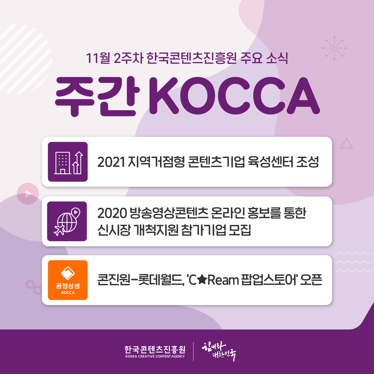주간KOCCA 를 통해 확인하세요! 😊