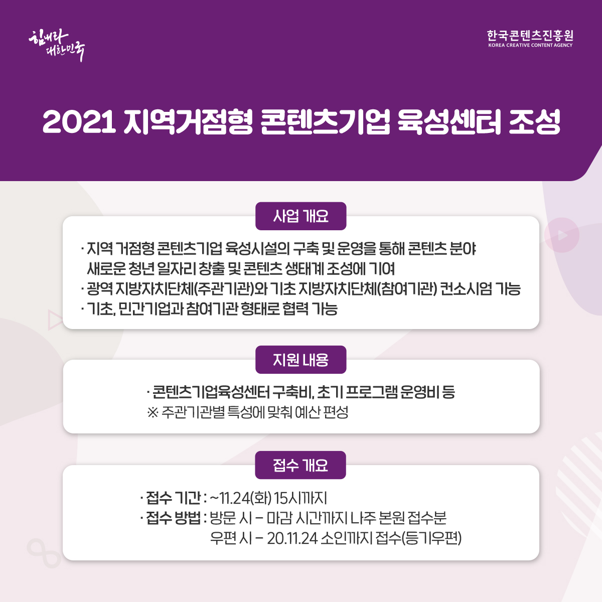 ✅ 2021 지역거점형 콘텐츠기업 육성센터 조성